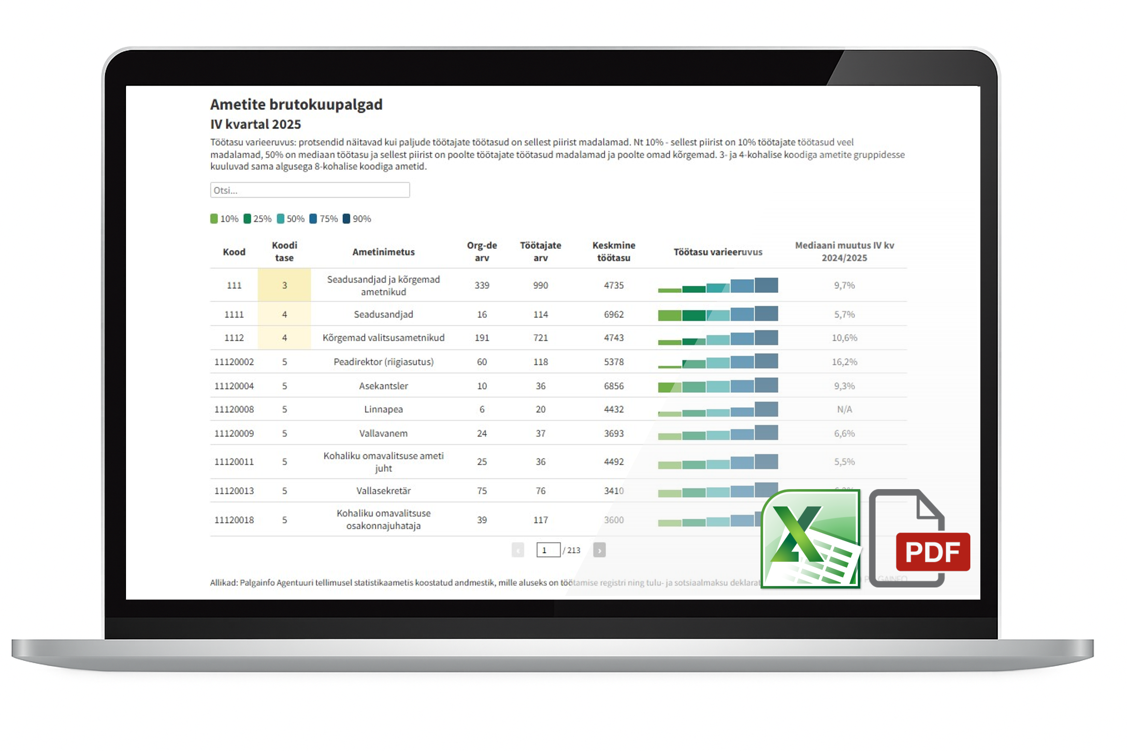 vaadata üle 1500 ameti (8-kohalise koodiga) detailset palgastatistikat 2025. aasta IV kvartalis